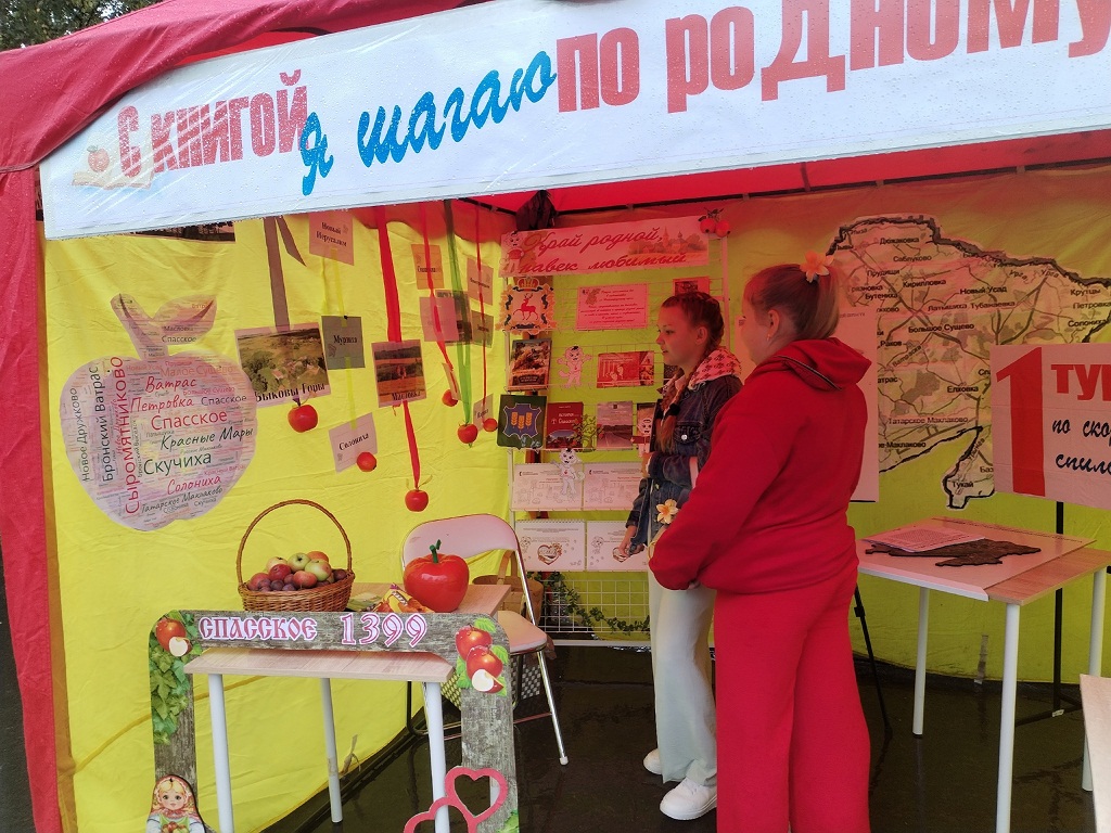 "С книгой я шагаю по родному краю" — так называлась конкурсно-игровая программа, которую сотрудники Центральной детской библиотеки подготовили к празднованию Дня села. В библиотечной палатке участники вспоминали старинные названия сёл района, собирали пазлы в виде карты и герба Спасского муниципального округа, знакомились с краеведческой литературой. Все желающие могли сделать фото в фотозоне «Спасское-1399».