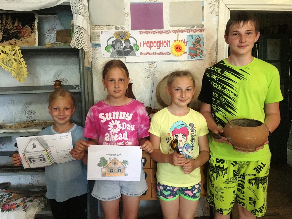 17 июля отмечается Единый день фольклора. В рамках праздника библиотекарь Высокоосельской сельской библиотеки провела квест–игру «Русская изба», посвященную культуре и быту нашего народа. В начале мероприятия она познакомила участников с убранством русской избы, что и где там располагалось. Ребята узнали, что изба делилась на женскую и мужскую половину; в каждом доме был Красный угол, где собиралась вся семья на трапезу. Рассказала о предметах старинного русского быта и даже показала, как некоторыми из них наши предки пользовались. С большим вниманием дети слушали рассказ о русской печи и о ее значении в жизни людей в прошлом. После познавательного рассказа ребята приняли участие в прохождении маршрута, где нужно было ответить на вопросы и выполнить различные задания. Маршрут состоял из нескольких станций: «Сказочная», «Загадочная», «Умники и умницы», «Музейная», «Мастерская», «Музыкальная». Пройдя все станции, ребята подобрали ключ к «Волшебному сундучку», а главное – они стали настоящими знатоками крестьянского быта и получили звание «Знатоки старины».