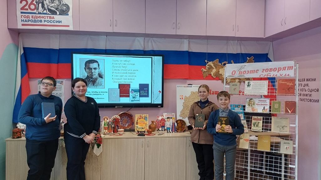 Мир и мировая литература знают много поэтов, обессмертивших свои имена неувядаемой славой, но таких, как поэт-герой Муса Джалиль, увековечивших свое имя и бессмертными творениями, и смертью, которая была подвигом, не так уж много. Муса Джалиль вошел в историю литературы как поэт мужества. Имя его сделалось нарицательным и стало символом стойкости, героизма, беззаветной преданности своей Родине. О творческой судьбе Мусы Джалиля, истории создания книги «Моабитская тетрадь», о подвиге поэта и его соратников рассказали библиотекари участникам мероприятия, прошедшего в детской библиотеке. В ходе встречи ребята прослушали стихотворения М. Джалиля и познакомились с произведениями поэта, представленными на книжной выставке «Жизнь, ставшая подвигом».